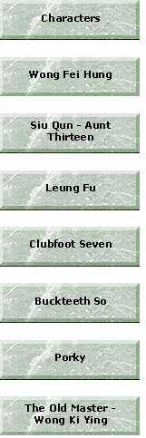 Characters | Wong Fei Hung | Siu Qun - Aunt Thirteen | Leung Fu | Clubfoot Seven | Buckteeth So | Porky | The Old Master - Wong Ki Ying |